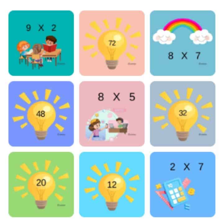 סדרת לוח הכפל – כרטיסיות למידה של לוח הכפל לילדים,
