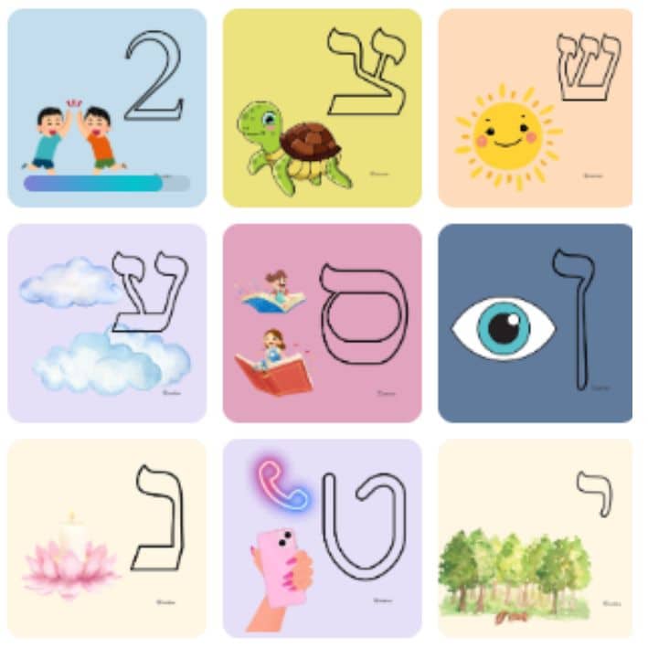 סדרת אותיות וספרות – כרטיסיות למידה של אותיות הא’ – ב’ העברי + ספרות 0 – 9 לילדים,