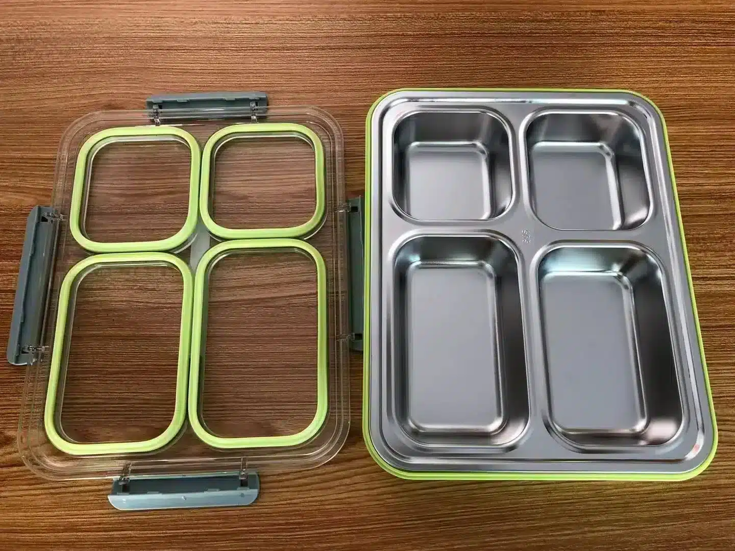 קופסת אוכל נירוסטה עם אטם מחולקת לארבעה תאים