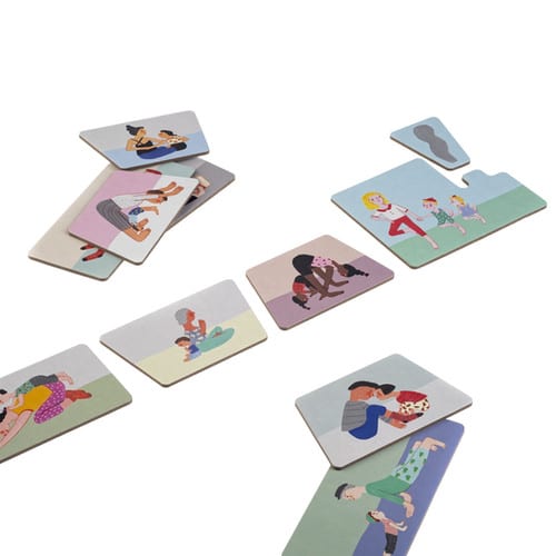 זהו “פאזל זורם” ומקורי של קרונות רכבת עם תנוחות הורה-ילד, בו התאמת החלקים נעשית באופן חופשי ויצירתי.