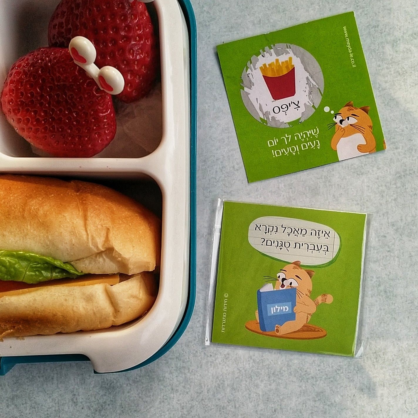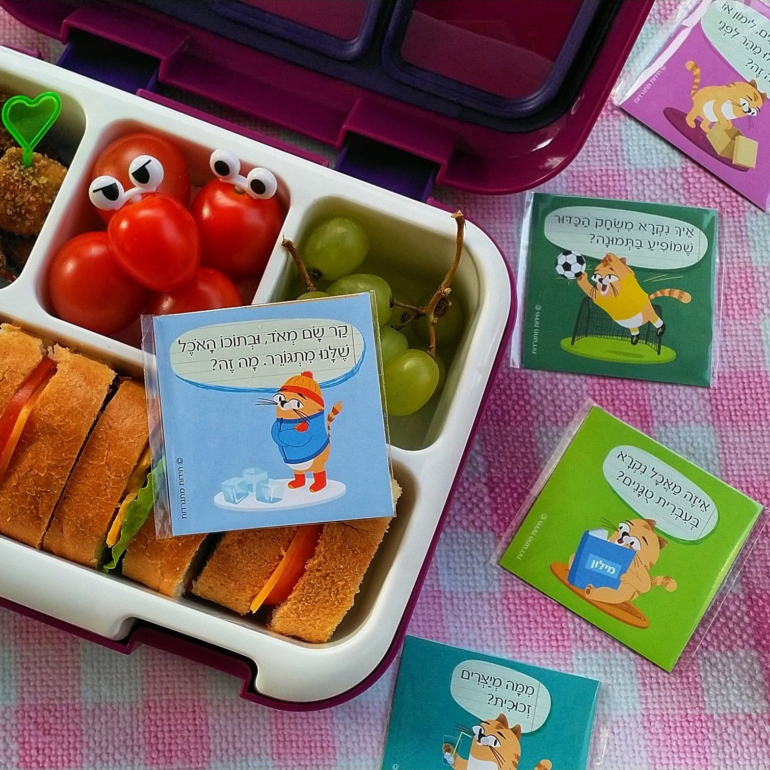 אמא, אבא, במקום להיפרד מהם בבוקר עם צביטה קטנה בלב, דמיינו שבזמן ארוחת העשר, כשכל הילדים לועסים בדממה, לילדים שלכם יש ניצוץ בעיניים כי שמת להם כרטיס של “חידות מתגרדות” בקופסה.