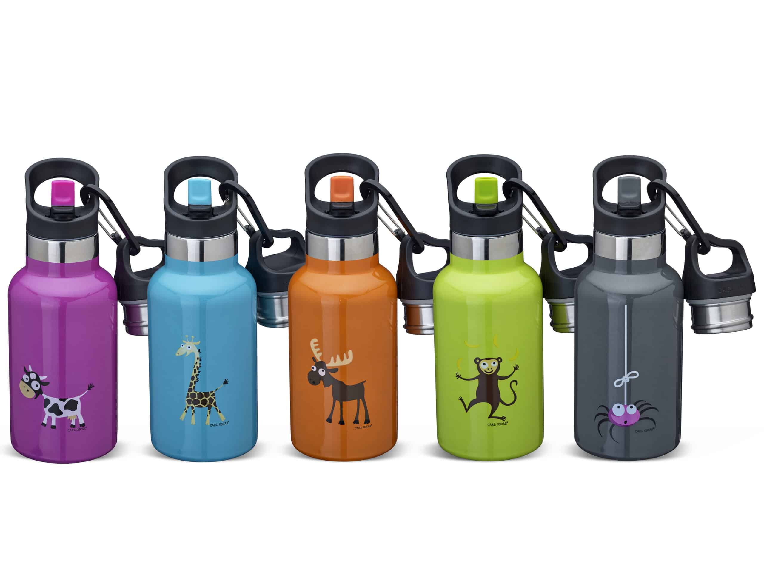 בקבוק מים נירוסטה ומבודד בוואקום עם קשית עם איורים לילדים