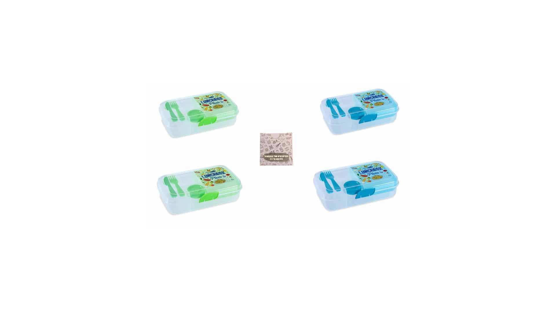 סה”כ ארבע קופסאות אוכל מחולקות לאנצ’ בוקס פלוס עם סכו”ם